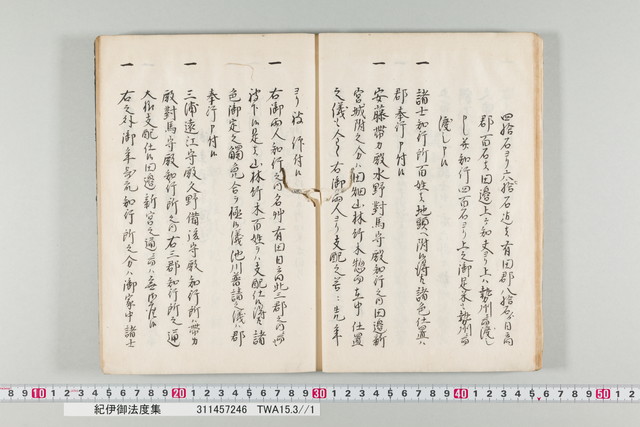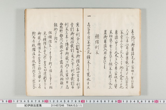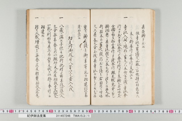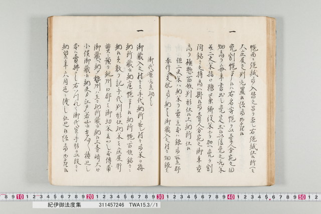 吉宗が藩主の時に編集が開始され、次の宗直に替わる享保元年に完成した紀州藩の法制資料。