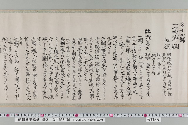 〔和歌山県〕/〔編〕1巻 28.5(軸31)cm×21m55cm 「紀州漁業図説」の底本 写本