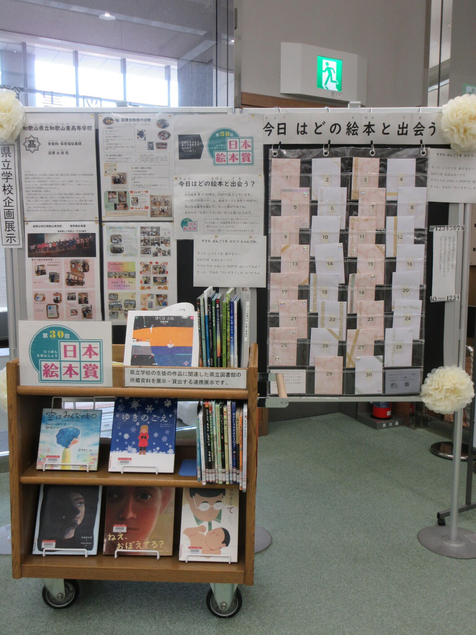 県立和歌山東高等学校の生徒のPOP作品と、関連する県立図書館資料を合わせて展示します。