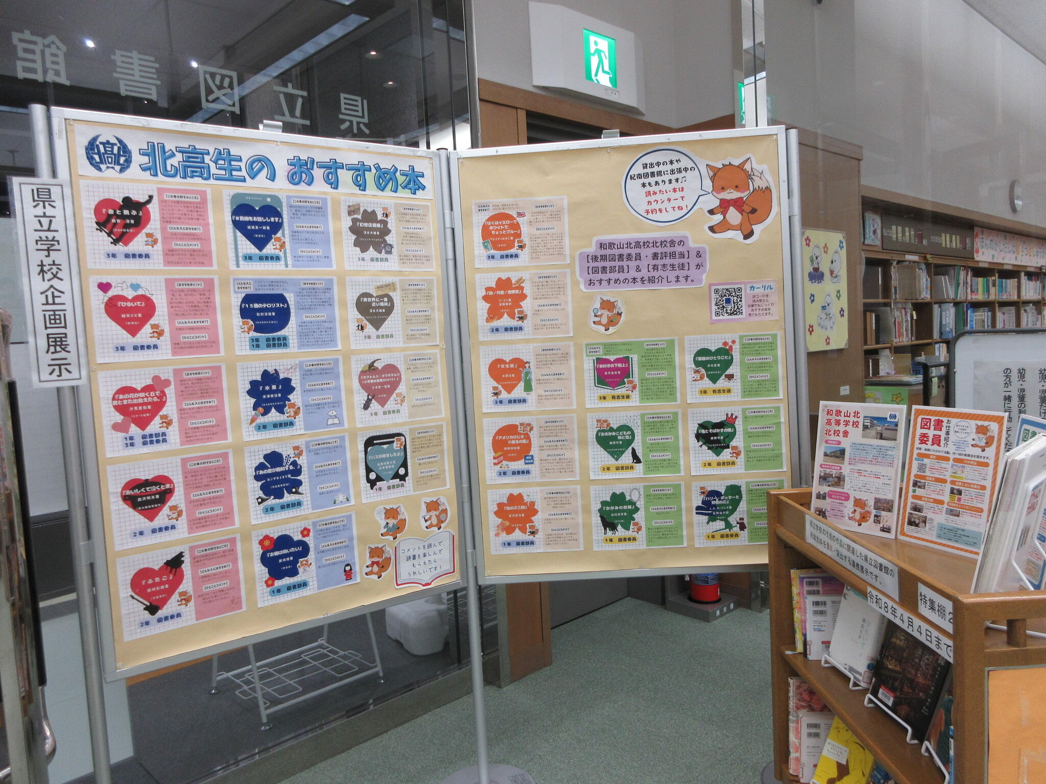 【資料展示】令和8年4月4日まで 県立学校企画展示を行っています 県立和歌山北高等学校北校舎生徒のPOP作品と活動紹介のパネルを、POPで紹介している県立図書館資料とともに展示しています。 展示期間 令和8年4月4日(土曜日)まで