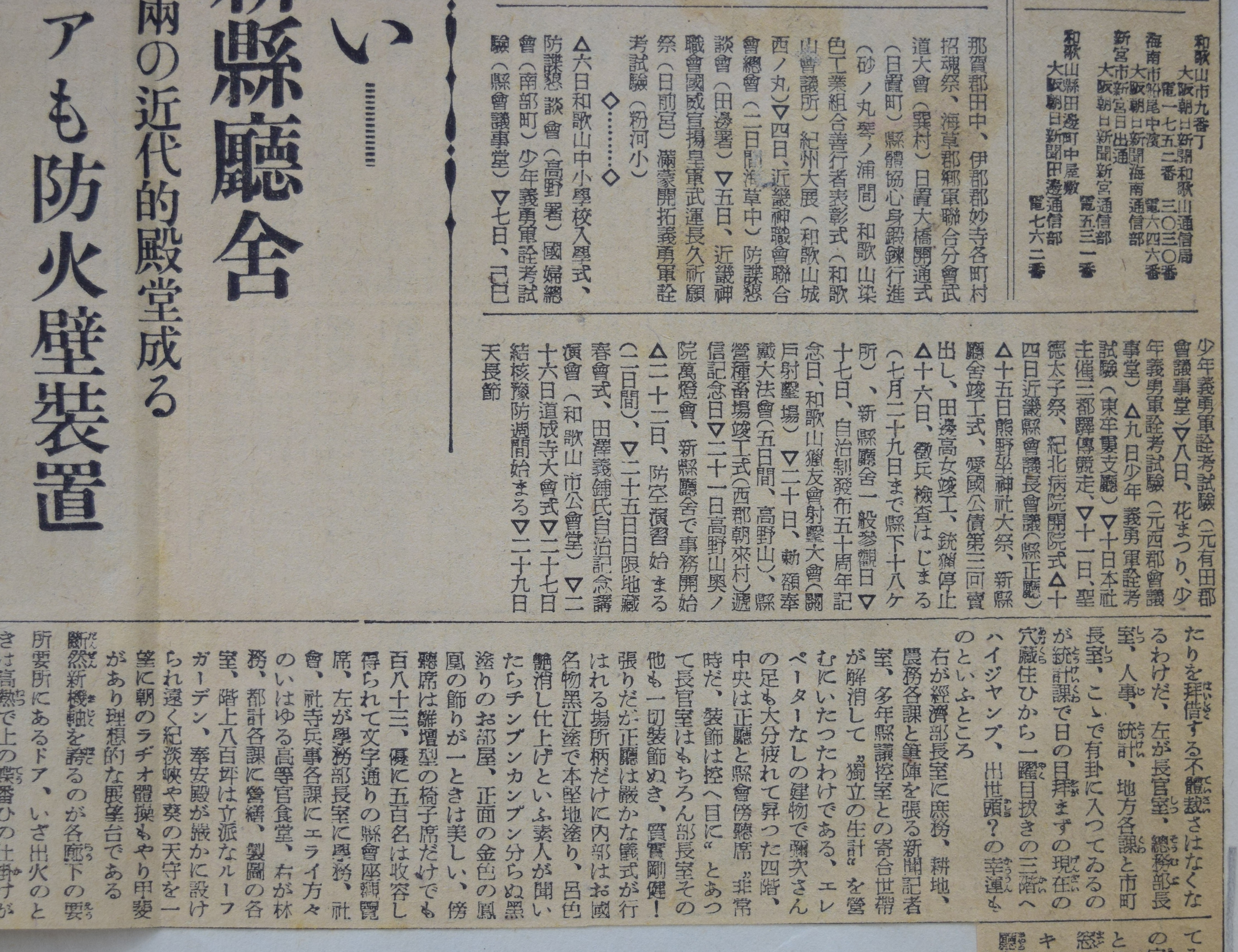 | 125 | 〔地震も怖くない防空色の新県庁舎〕 | 昭和13年4月1日 | 大阪朝日和歌山版 | 新聞記事 | JPG | |