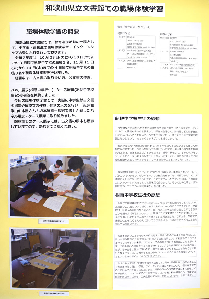 このパネル展示は、職場体験学習に参加した桐蔭中学校の生徒が取り組んだ成果です。