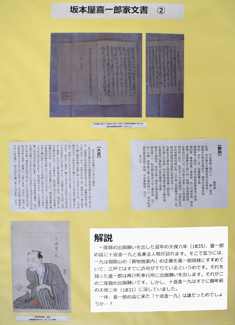 今回のパネル展示では、江戸時代の和歌山の城下町で書物屋(書店)を営んでいた坂本屋喜一郎を紹介します。